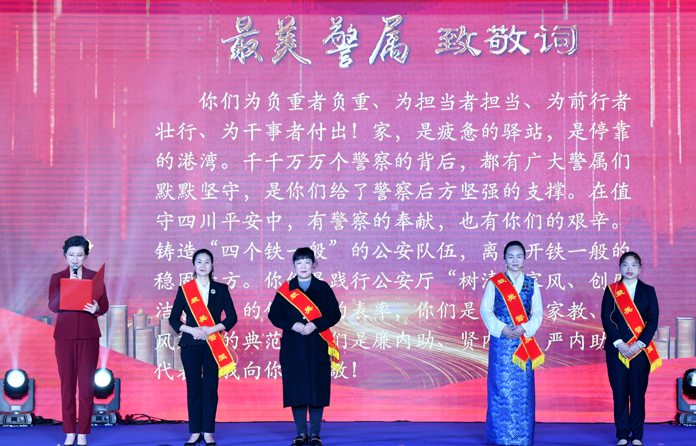 活動公布南充市公安局特巡警支隊四大隊大隊長王亮、市公安局順慶區(qū)分局反恐怖工作大隊大隊長謝燕2名同志被評為“最美基層民警”;閬中市公安局政治處輔警黃炬琪被評為“最美警務(wù)輔助人員”;南充市儀隴縣宏德小學校教師邱麗被評為“最美警屬”。