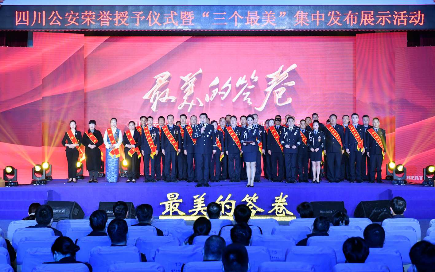 12月16日,四川公安榮譽授予儀式暨“三個最美”集中發(fā)布展示活動在成都舉行。省公安廳與省委宣傳部聯(lián)合展示了全省100名“最美基層民警、最美警務(wù)輔助人員、最美警屬”的感人故事和先進事跡,并為光榮退休的同志和榮立集體一等功的單位、獲得二級公安英模稱號的民警代表頒發(fā)紀念章、獎牌獎?wù)隆?/p>