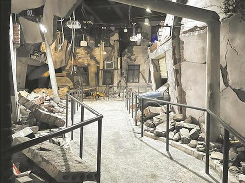 步入該區(qū)域的最前方,我們看到的又是一片震撼場景。這里全方位立體地模擬了強(qiáng)震后的現(xiàn)場,坍塌一半的房屋、斷裂的天花板、充滿裂痕的墻面和破碎的門板以及散落一地的磚塊,高度逼真的場景給人強(qiáng)烈的視覺沖擊力。“這次體驗(yàn)真的很震撼,讓我對地震又有了更深入認(rèn)識。”體驗(yàn)結(jié)束后,探班員感嘆地說。