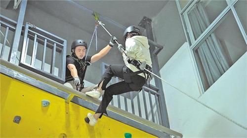 探班員體驗(yàn)高層緩降