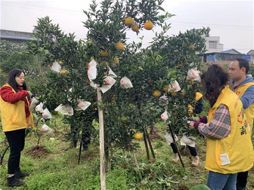 正在王大爺著急的時候,彭山青年人才黨支部第八小組的黨員們主動作為,9名青年黨員志愿者紛紛身穿黃馬甲,來到王大爺?shù)墓麍@里,手拿果袋,耐心地為每顆柑橘穿上“新衣”,志愿者們齊力合作,一下午的時間就完成了60株柑橘樹的套袋工作。果子們都包裹得嚴(yán)嚴(yán)實(shí)實(shí)的,為它們安全成長、收獲年底的甜蜜提供重要保障,青年黨員們也在這一場志愿服務(wù)中沉淀學(xué)習(xí)。