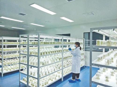 布拖馬鈴薯科技小院工作人員觀察組培苗長勢(shì)情況。