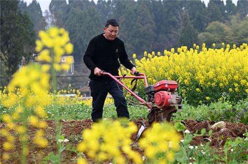 3月4日,內(nèi)江市東興區(qū)石子鎮(zhèn)七星村,農(nóng)民正在耕整土地。