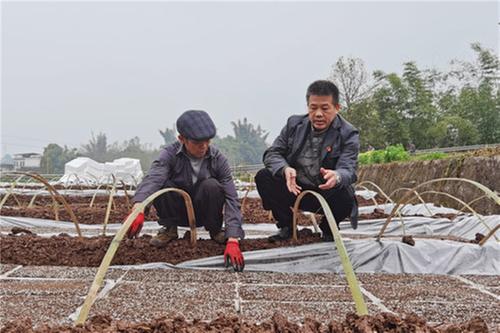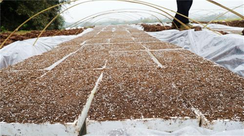 3月10日,在瀘州市龍馬潭區(qū)金龍鎮(zhèn)曹壩村內,一場春雨后,當?shù)卮迕裾谔镩g進行高粱集中漂浮育苗。
