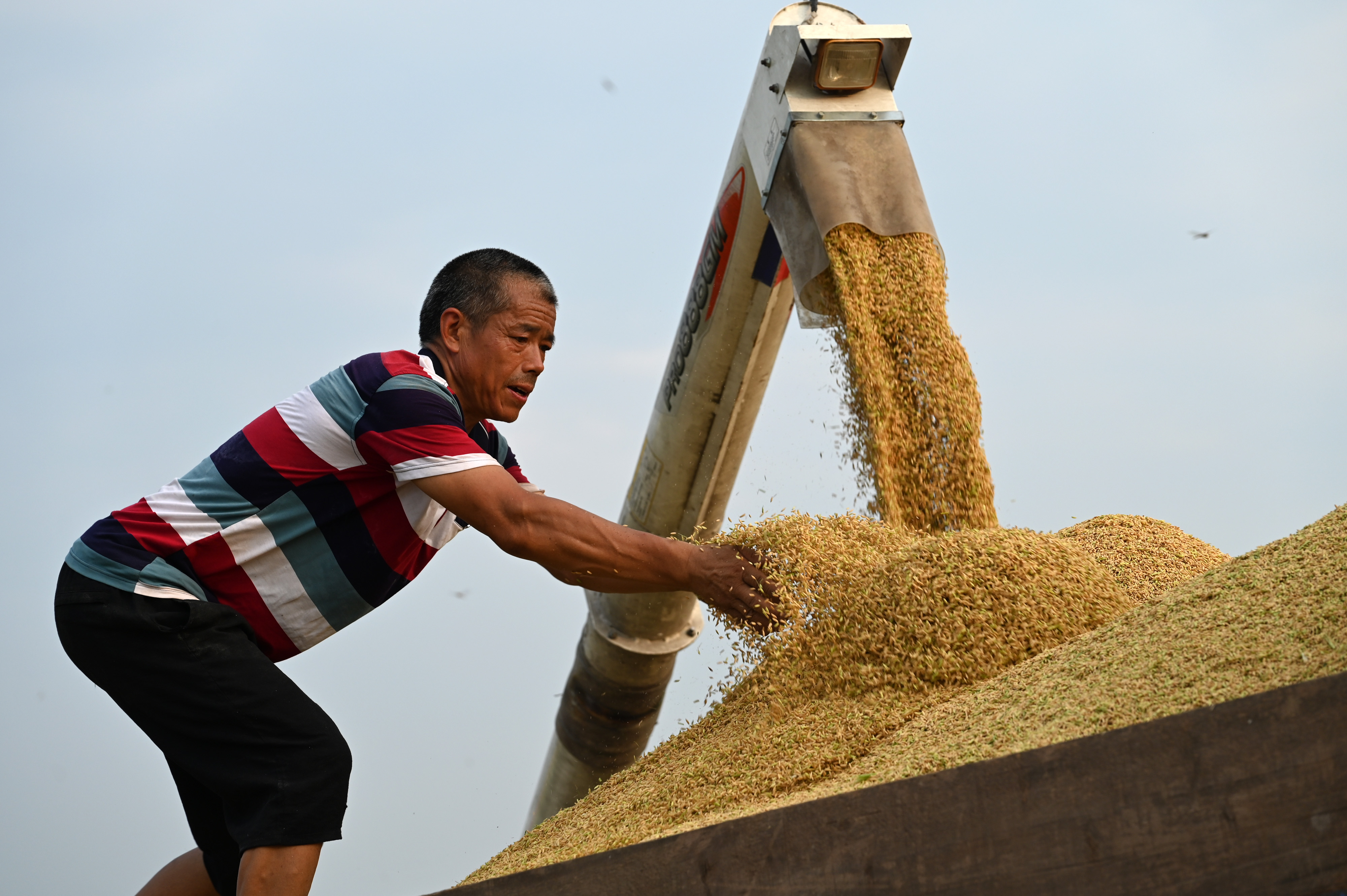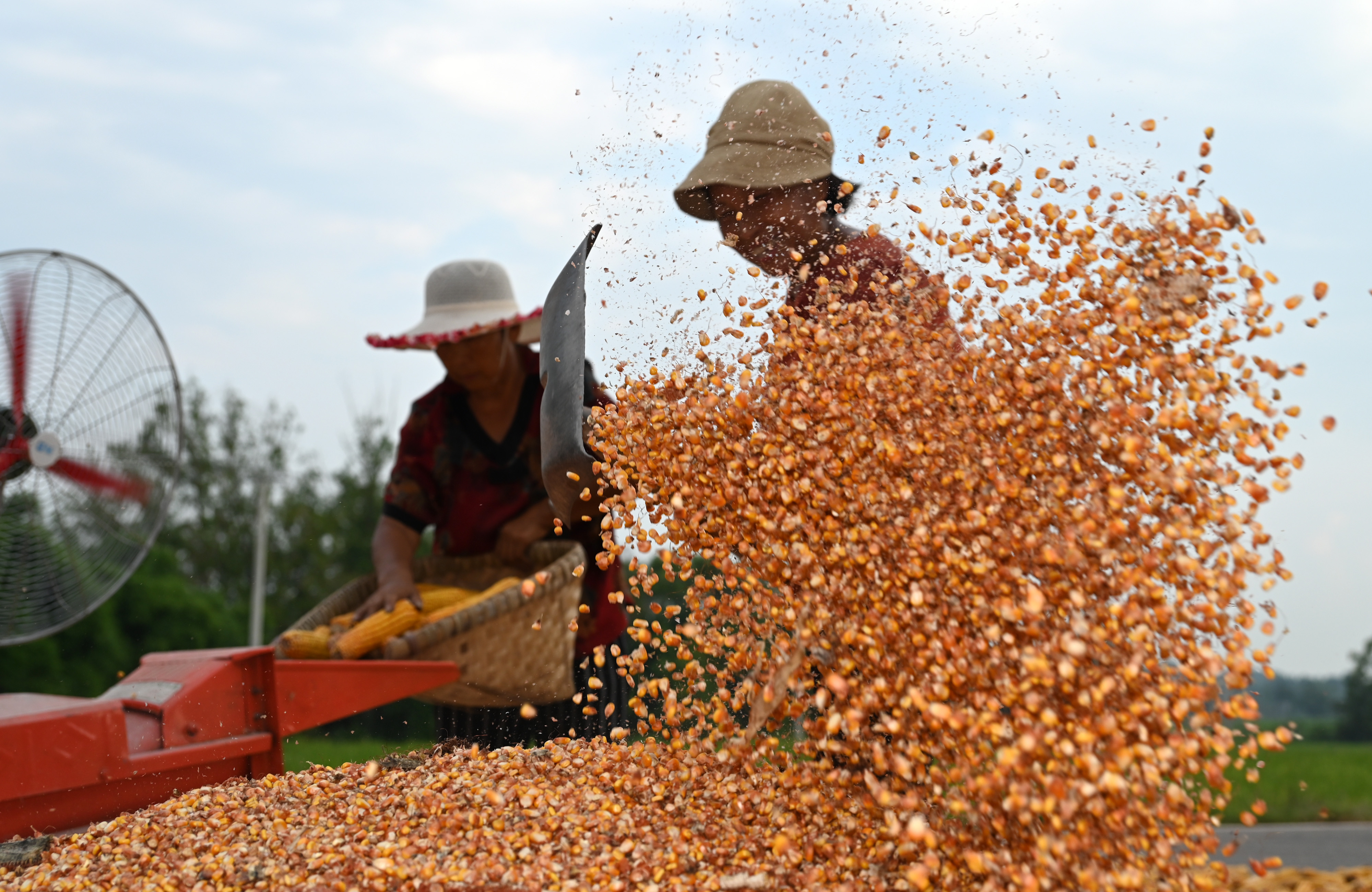 8月17日,在內(nèi)江市東興區(qū)田家鎮(zhèn),農(nóng)民正在搶收糧食。