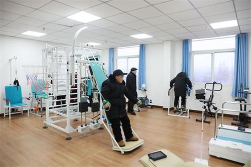 老人正在東湖醫(yī)養(yǎng)結(jié)合中心的活動室進(jìn)行健身活動。