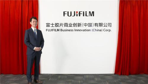 富士膠片商業(yè)創(chuàng)新(中國(guó))有限公司董事長(zhǎng)內(nèi)藤昌繼為新公司名稱揭幕