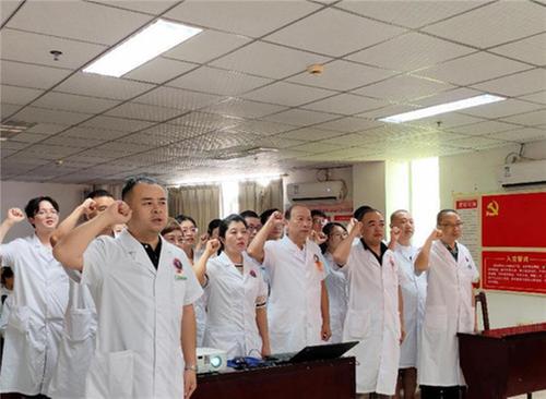 一襲白衣,一身責(zé)任,一生榮光。會上,由黨支部副書記、副院長魯洋領(lǐng)誓,全體醫(yī)生高舉右拳莊嚴(yán)宣誓,用錚錚誓言詮釋了醫(yī)務(wù)人員為護(hù)佑人民健康矢志奮斗的堅(jiān)定決心。
