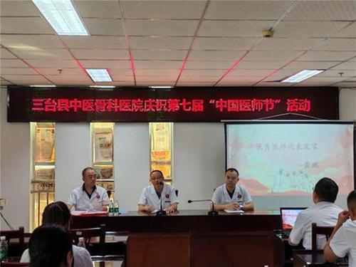 為充分發(fā)揮先進(jìn)典型示范引領(lǐng)作用,激勵(lì)全院醫(yī)務(wù)人員繼續(xù)發(fā)揚(yáng)“敬佑生命、救死扶傷、甘于奉獻(xiàn)、大愛無疆”的崇高職業(yè)精神,共赴醫(yī)院高質(zhì)量發(fā)展征程,近期,綿陽市三臺縣中醫(yī)骨科醫(yī)院開展了慶祝第七屆“中國醫(yī)師節(jié)”系列活動。