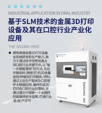 同樣運(yùn)用3D打印技術(shù)的,還有來自成都獲得銀獎(jiǎng)的“基于SLM技術(shù)的金屬3D打印設(shè)備及其在口腔行業(yè)的產(chǎn)業(yè)化應(yīng)用”項(xiàng)目。“我們擁有高端金屬3D打印設(shè)備全系統(tǒng)研發(fā)和生產(chǎn)的能力,能夠形成3D打印在口腔行業(yè)的落地,同時(shí)還能快速占領(lǐng)口腔行業(yè)的關(guān)鍵節(jié)點(diǎn),在未來有廣闊的市場空間。”該項(xiàng)目負(fù)責(zé)人說到。