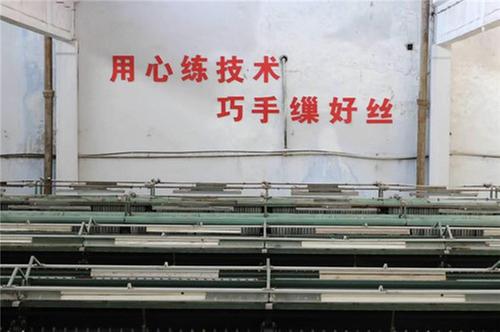 值得一提的是,在南充六合絲博園,不僅有靜靜述說著千年絲綢故事的歷史舊物,還有仍在生產運作的織綢車間。梭織綢觀覽車間便是其中之一,該車間始建于1989年,現在仍保留著當時的制絲工藝。8800平方米的車間里,安裝有梭織綢機160臺。據介紹,該車間全年可生產各類真絲綢緞160萬米,至今仍是全國生產規(guī)模最大的有梭織綢車間。