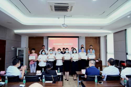 為進(jìn)一步推動“雙助”活動持續(xù)深入開展,充分發(fā)揮民營企業(yè)吸納就業(yè)主渠道作用,名山區(qū)政協(xié)主席、區(qū)茶產(chǎn)業(yè)推進(jìn)領(lǐng)導(dǎo)小組組長倪林,名山區(qū)政協(xié)副主席、工商聯(lián)主席鄭榮杰,省農(nóng)科院加工所主任夏陳,德仁堂控股集團(tuán)高級副總裁毛正林,省退役士兵就業(yè)創(chuàng)業(yè)服務(wù)促進(jìn)會代表黃興、高安清,名山區(qū)人社局,區(qū)政協(xié)相關(guān)辦公室負(fù)責(zé)人,四川蒙頂山躍華茶業(yè)集團(tuán)有限公司,四川蒙頂山豐豐茶業(yè)有限公司,四川省大川茶業(yè)有限公司,雅安市金花藏茶茶業(yè)有限公司以及首批受聘并培訓(xùn)結(jié)業(yè)的“健康咨詢師”參加活動。