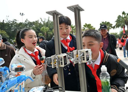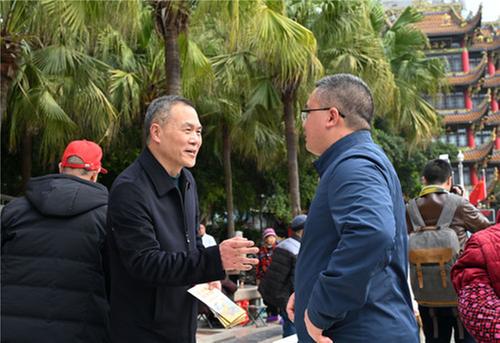 3月5日,內(nèi)江市東興區(qū)大千廣場(chǎng),志愿者在市民中開展“崇尚科學(xué),反對(duì)邪教”宣傳教育志愿服務(wù)活動(dòng)。