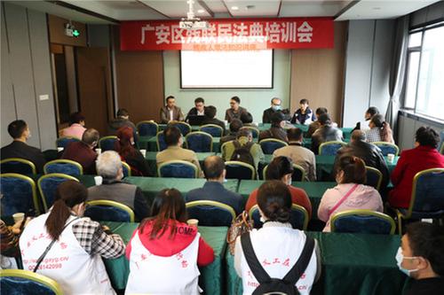 原來,10月15日是第37個(gè)國際盲人節(jié),同時(shí)又時(shí)值殘疾人文化周,廣安區(qū)殘聯(lián)和司法局、總工會(huì)特地組織此次活動(dòng),活動(dòng)邀請(qǐng)到廣安區(qū)法雨律師事務(wù)所的律師楊長長進(jìn)行授課。當(dāng)天,參加活動(dòng)的除22名盲人外還有7名陪護(hù)人員(家屬)及12名廣安義工志愿者。