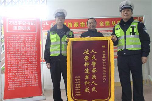 “謝謝你們,沒想到那么快,你們就破案了……”近日,眉山市青神縣人宋大爺家屬到青神縣交管大隊(duì),為民警送來“人民警察為人民 破案神速顯神威”的錦旗,向偵破“11.6”交通肇事逃逸案的辦案民警羅利川、辜濤表示感謝。