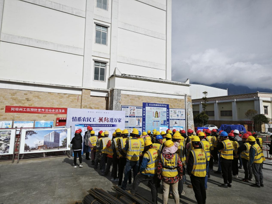 此次阿壩州工傷預防項目集中宣傳活動由阿壩州人社局、阿壩州住建局和茂縣人社局、茂縣住建局聯(lián)合組織,旨在提升建筑行業(yè)農民工工傷預防意識和能力,助推建筑行業(yè)平穩(wěn)發(fā)展。職業(yè)學院項目工地近50名農民工參加活動。