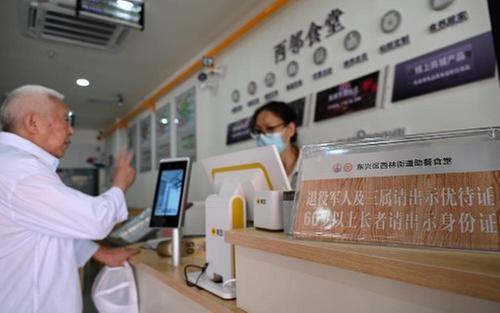5月20日,在內(nèi)江市東興區(qū)西林街道綜合為老服務(wù)中心“西鄰食堂”,老人們正在吃午餐。