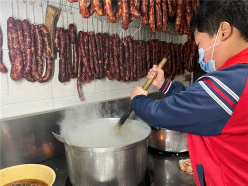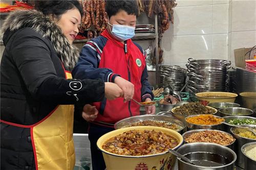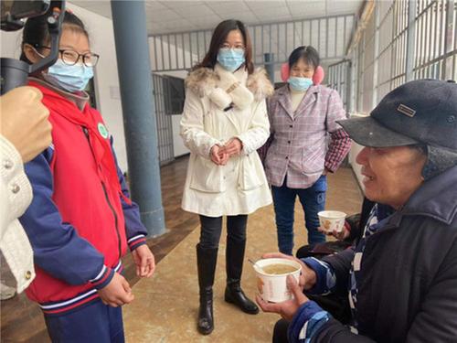 燒水、倒粉、攪拌……在周蓉的指導(dǎo)下,小朋友們邊學(xué)邊做,耗時(shí)兩小時(shí)做好了自己的“愛心大餐”。盛到碗中,放上美味的調(diào)料,在大通鎮(zhèn)副鎮(zhèn)長王森的帶領(lǐng)下,同學(xué)們帶著熱騰騰的大通涼粉來到大通鎮(zhèn)龍臺寺村的老年公寓里,為老人們送上節(jié)日祝福,讓他們感受到社區(qū)大家庭的溫暖。“哎呦!這個(gè)熱涼粉真香,謝謝黨和政府,讓我們在寒冬品嘗到這么美味的熱涼粉。”茍叔叔說道。