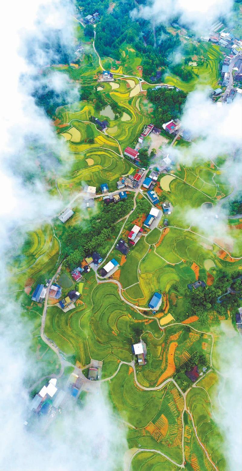 8月25日,雨后放晴,巴中市南江縣雙流鎮(zhèn)菩船村云霧繚繞,山村的田園、道路、民居、青山等若隱若現(xiàn),宛如一幅秀美的鄉(xiāng)村畫卷。