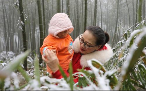 “在南方,很少看見(jiàn)下雪。今天剛下雪,我趕緊來(lái)到大旺竹海,拍一點(diǎn)美美的照片。”何蓉一邊拍照一邊說(shuō)。