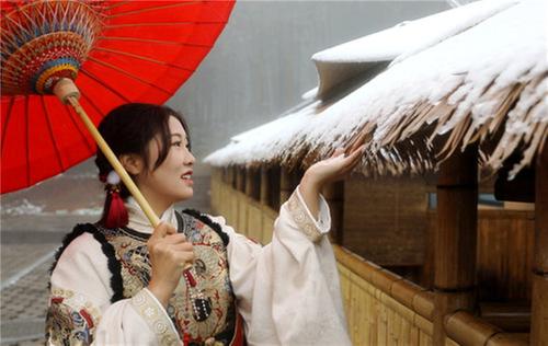 在白節(jié)鎮(zhèn)趙坪村,游客還身著漢服,漫步在白雪皚皚之下的“翡翠的長(zhǎng)廊”上,游客感受雪景的同時(shí)到竹海的清幽、空靈、青翠欲滴,清新空氣中飽含竹葉清香,體味竹海深厚的文化內(nèi)涵的同時(shí),也充分感受到雪景給廣大游客帶來(lái)的別有一番韻味。