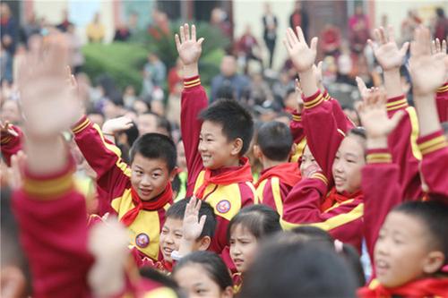 小學(xué)生參與知識(shí)問答。彭圣洲 攝。