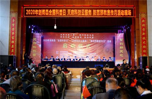 縣委常委、宣傳部長(zhǎng)杜嫣然宣布2020年劍閣縣“全國(guó)科普日”活動(dòng)暨“天府科技云服務(wù)”防范邪教宣傳月正式啟動(dòng)。