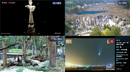 “三九大”,是四川最有代表性的三張名片。“三”是指三星堆,“九”是指九寨溝,“大”是指大熊貓,是四川旅游面向全國(guó)乃至全球的一張新名片。憑借中國(guó)電信5G+4K慢直播、8K+VR 360度全景直播等新技術(shù)帶來(lái)的沉浸式場(chǎng)景體驗(yàn),可讓三星堆的青銅大立神像,九寨溝的諾日朗和大熊貓基地中的盼盼園等景點(diǎn)高清呈現(xiàn)在人們的面前,大家足不出戶就可通過(guò)電信IPTV、i視視APP、天翼云VR、四川觀察APP、央視頻等參與體驗(yàn),探秘三星堆文化,賞九寨四季換妝,觀熊貓撒嬌賣萌,實(shí)現(xiàn)線上打卡網(wǎng)紅旅游點(diǎn)。