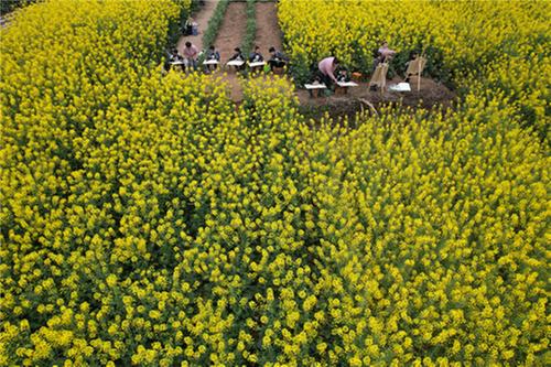 陽春三月,春暖花開。內江市東興區(qū)藝境云藝術培訓學校的學生在老師帶領下走進油菜花田間,用手中畫筆描繪美麗春色,感受春天的氣息。