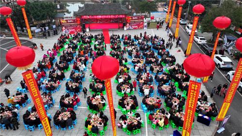 2024年2月2日,群眾在鳳凰湖村烏木水寨吃刨豬湯。 王超明 攝