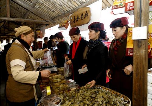 2024年2月2日,群眾在鳳凰湖村烏木水寨購買土特產(chǎn)。 王超明 攝