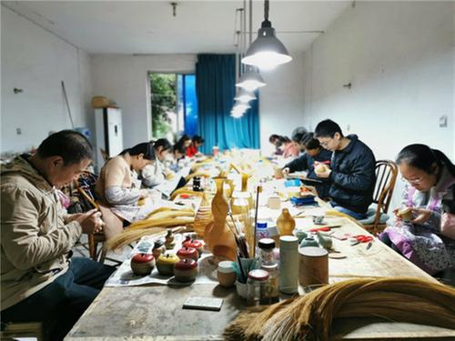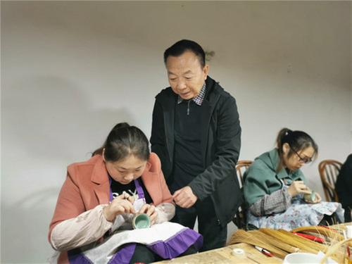10月20日上午,在眉山市青神縣竹福竹藝文化有限公司的工作室里,竹編大師張德明正和竹編工藝師交流瓷胎竹編之彩陶系列樣品的編織手法,并就如何完善編織細節(jié)進行探討,以迎接即將來臨的2020中國國際竹產(chǎn)業(yè)交易博覽會。