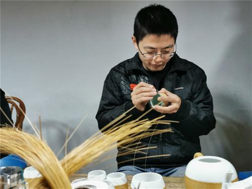 “在我看來,竹子和瓷它們原本是相融的,因為竹子依土而生,彩陶從土而出。經(jīng)過千錘百煉,泥土變成了瓷;經(jīng)過千刀萬刮,竹子變成了竹絲。而現(xiàn)在它們又緊緊相融、互相依存,竹博會就為我們搭建起了這樣一個融合的大平臺。”除了竹編彩陶系列作品,張德明還指導竹編工藝師們制作瓷胎竹編“融”茶具,引其寓意為竹博會加油助力。