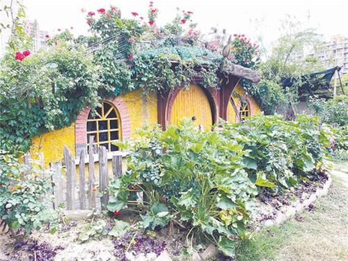 花香四溢,瓜果飄香……探班員來到成華區(qū)萬科路5號4樓樓頂,放眼望去,這里竟有一個3000平方米的農(nóng)場。順著田邊小徑往里走,左邊是種滿鮮花、果樹的小游園,右邊是一個小型兒童游樂場;再往里走,十余塊小型田地映入眼簾,每塊田地上栽種著不同的蔬菜。田園里除了種植植物、蔬菜外,還飼養(yǎng)了雞、兔、豬等動物。人們來到這里,在城市中就能體會農(nóng)事的樂趣。