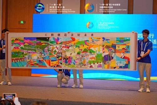 活動(dòng)上展示了由“一帶一路”青少年及志愿者共同繪制的“美好未來”畫卷,各國青少年用豐富的色彩和線條以及具有特色的文化元素,生動(dòng)表達(dá)了共建“一帶一路”廣大青少年親密攜手共創(chuàng)未來的美好愿景。