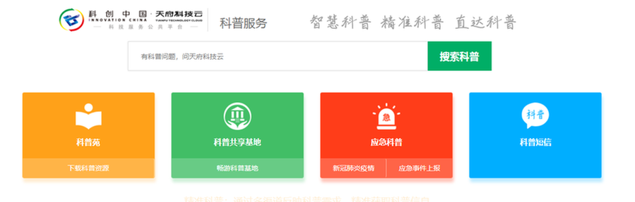 平臺設(shè)置“科普苑”“科普共享基地”“應(yīng)急科普”“科普短信”等多個板塊,根據(jù)每個用戶的關(guān)注熱點、關(guān)心領(lǐng)域、關(guān)切話題,個人化、精準(zhǔn)化地面向廣大群眾推送優(yōu)質(zhì)權(quán)威的科普信息,直達(dá)高效地普及科學(xué)知識。迄今為止,天府科技云已匯聚科普共享基地800個,權(quán)威優(yōu)質(zhì)科普資源8萬余條,為全省5600多萬群眾提供了2.01億次精準(zhǔn)科普服務(wù)。