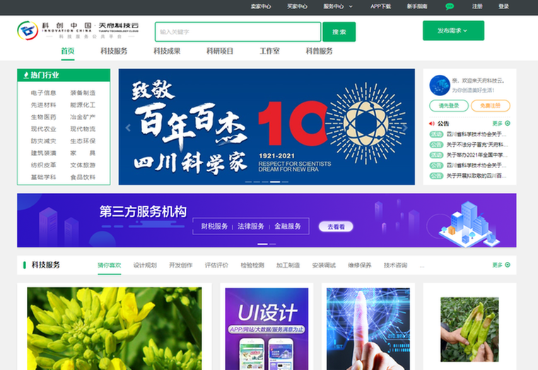 平臺設(shè)置“賣家中心”“買家中心”和“服務(wù)中心”,由“買家”線上發(fā)布科技需求,平臺在全網(wǎng)內(nèi)通過智能匹配,精準(zhǔn)推介“賣家”資源,并由“服務(wù)中心”提供線下對接以及金融、財稅、法律等配套服務(wù)?,F(xiàn)在,天府科技云已發(fā)布規(guī)劃設(shè)計、開發(fā)創(chuàng)作、評估評價、加工制造、技術(shù)咨詢等10多類17萬余項科技服務(wù)。