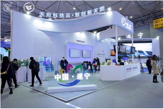 本次科創(chuàng)會,遂寧推介洽談區(qū)共計展示推介項目154個,通過新科創(chuàng)、新科享、新合作三大板塊,以“1+6+N”(“1+6+N”,“1”為天府科技云,“6”為遂寧市科技優(yōu)勢六大產(chǎn)業(yè),“N”為遂寧市科技項目技術(shù)成果)服務(wù)模式,集中展示遂寧鋰電、新能源、電子信息、裝備制造、綠色食品、新材料等產(chǎn)業(yè)科技創(chuàng)新成果。