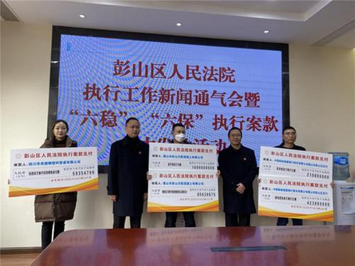 通氣會上,彭山區(qū)人民法院舉行了“六穩(wěn)”、“六保”執(zhí)行案款集中發(fā)放活動。