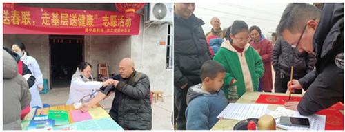 來(lái)自縣書法家協(xié)會(huì)的相關(guān)同志精心為前來(lái)參加活動(dòng)的村民書寫春聯(lián)30余副,為他們送上新春祝福。同時(shí),來(lái)自縣中醫(yī)院的醫(yī)護(hù)人員為60余名村民提供中醫(yī)問診服務(wù),回應(yīng)群眾關(guān)切的重大疾病,宣傳慢性病預(yù)防相關(guān)知識(shí),開展血壓檢測(cè)90余人次。