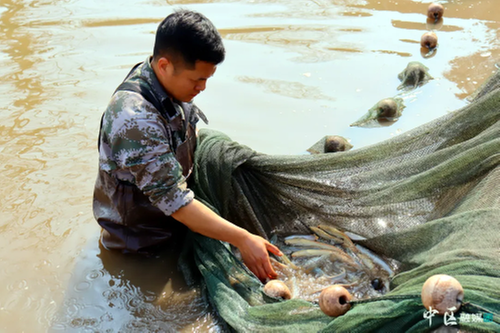 近日,在市中區(qū)朝陽(yáng)鎮(zhèn)桂明水產(chǎn)養(yǎng)殖家庭農(nóng)場(chǎng)內(nèi),一片修建整齊的魚(yú)塘波光粼粼,岸上水泥路繞塘而建,塘邊草木蔥蘢。養(yǎng)殖戶張秋林正在魚(yú)塘中拉網(wǎng)捕魚(yú),隨著他手中的漁網(wǎng)逐漸收攏,成堆的白烏魚(yú)紛紛跳躍著露出水面,白色的魚(yú)身在陽(yáng)光的照耀下十分亮眼。