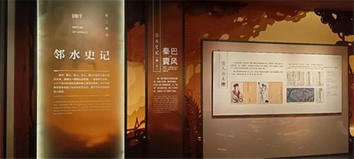 走進(jìn)位于國(guó)家AAA級(jí)旅游景區(qū)——黃桷樹公園核心區(qū)的鄰水縣博物館,只見由四棟建筑群組建而成的博物館古樸而典雅。在工作人員帶領(lǐng)下,邁過寫有“鄰水博物館”五個(gè)鎏金大字的大門,便來到了序廳,映入眼簾的是鄰水三山夾兩槽的卷軸裝置與前言,鄰水大事記以銅版腐刻的形式再現(xiàn)了波瀾壯闊的千年歷史。接下來,以鄰水大事記為引,山水廳、歷史廳、黨史廳、成就廳、體驗(yàn)廳等展廳將依次展開,展示鄰水厚重的歷史文化脈絡(luò)。