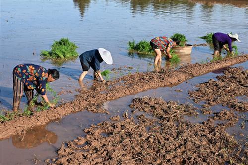 5月13日,內(nèi)江市東興區(qū)順河鎮(zhèn)觀音洞村,村民不誤農(nóng)時(shí)栽插秧苗。