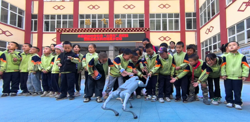 在互動(dòng)環(huán)節(jié),科普“大篷車”帶來(lái)了機(jī)器人、機(jī)器狗等一批科普展品。當(dāng)靈活的機(jī)器人隨著音樂(lè)起舞、機(jī)器狗與同學(xué)們親切“打招呼”時(shí),現(xiàn)場(chǎng)爆發(fā)出陣陣驚嘆和歡呼。孩子們小腦袋齊刷刷前傾,小手攥著衣角直晃,“哇”的驚嘆聲中夾雜著“它真的會(huì)動(dòng)?”“能教我們做實(shí)驗(yàn)嗎?”的追問(wèn)??茖W(xué)的種子在孩子們心中悄然發(fā)芽。