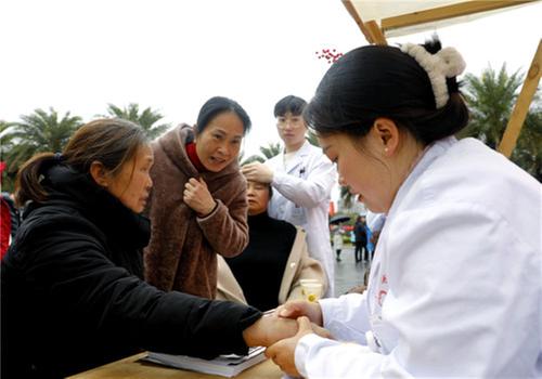 2024年2月24日,納溪區(qū)中醫(yī)醫(yī)院的康復治療師在納溪區(qū)麒麟文化廣場為群眾免費推拿、按摩,讓群眾體驗中醫(yī)治療的神奇功效。王超明 攝