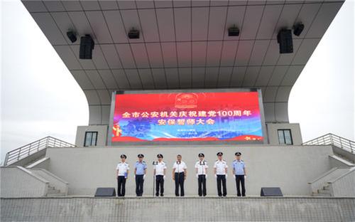 “我宣誓:對黨忠誠、服務(wù)人民、執(zhí)法公正、紀律嚴明。當好打擊犯罪的主力、維護穩(wěn)定的中堅、護航發(fā)展的先鋒,堅決打贏建黨100周年安全保衛(wèi)攻堅戰(zhàn)!”6月20日上午,省公安廳南充戰(zhàn)訓(xùn)基地,南充市公安機關(guān)慶祝建黨100周年安保誓師大會現(xiàn)場,來自全市公安機關(guān)1200名民警輔警面向黨旗高舉右手,鏗鏘的誓言響徹云霄。