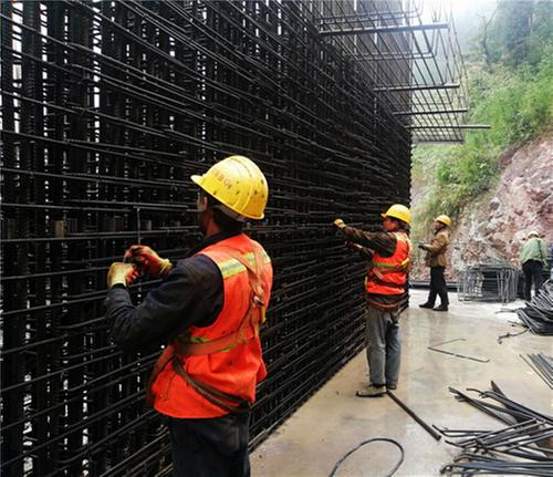 瓦屋山快速通道麻柳平特大橋施工現(xiàn)場,工人正在進(jìn)行橋墩模安裝和鋼筋籠捆扎