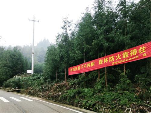 11月26日,在眉山市洪雅縣柳江鎮(zhèn)中山村一組,國(guó)網(wǎng)洪雅縣供電公司工作人員正在清除防火隔離帶區(qū)域內(nèi)的高干樹(shù)木。沿玉屏山景區(qū)沿線,加裝宣傳標(biāo)牌、懸掛宣傳橫幅等工作也在同步進(jìn)行。