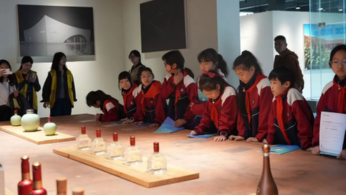 在凸酒酒業(yè)有限公司,同學(xué)們依次參觀了博物館、現(xiàn)代制酒車間和非遺制酒車間,了解糧食甄選、發(fā)酵蒸餾等白酒釀造流程。在白酒調(diào)制體驗(yàn)區(qū),學(xué)生嘗試調(diào)酒、瓶標(biāo)設(shè)計、貼標(biāo)等操作。“原來釀好酒要經(jīng)過這么多步驟,真是長知識了!”