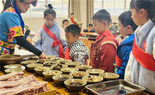 在四川雅妹子風(fēng)醬肉制作技藝的展示區(qū),師傅們身著傳統(tǒng)服飾,現(xiàn)場演繹風(fēng)醬肉制作的古老技藝。孩子們圍成一圈,目光緊緊跟隨師傅的動作,眼中滿是好奇與驚嘆。從精選食材、調(diào)配醬料,到歷經(jīng)數(shù)道工序的腌制與晾曬,師傅們一邊操作,一邊詳細(xì)講解其中的門道。通過師傅們耐心細(xì)致地講解,孩子們深刻了解到這一傳統(tǒng)技藝背后所蘊(yùn)含的洪雅飲食文化。